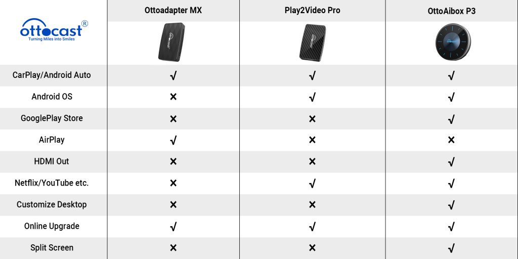 Lastly, for those who take their in-car experience and portable media very seriously, the OttoAibox P3 offers a massive step up in quality and features. Like the Play2Video Pro, the OttoAibox P3 includes wireless access to Android Auto and CarPlay along with a built-in OttoDrive 2.0 (Android 12) system. However, this premium model also includes access to the Google Play Store, allowing you to install many of your favorite apps and games to be played right on your car screen.